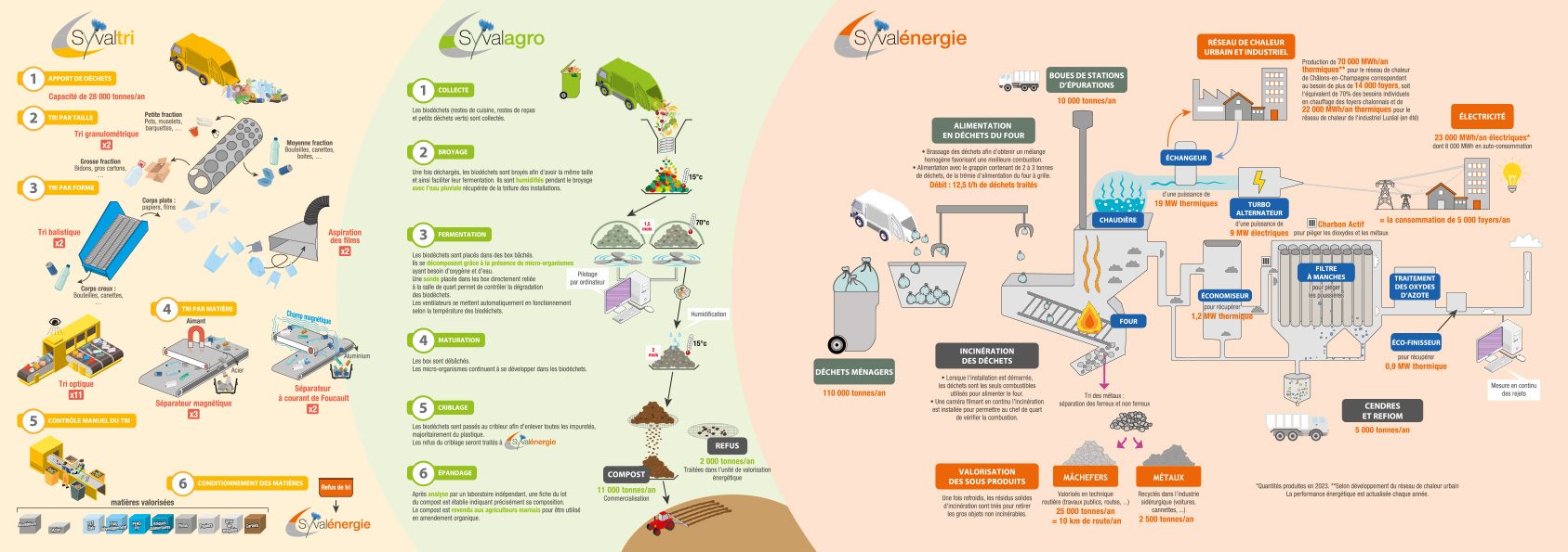 Le SYVALOM réunit sur un même site trois unités complémentaires — tri, valorisation organique et valorisation énergétique — pour donner une seconde vie à chaque déchet. Grâce à ce pôle multifilière unique, le territoire dispose d’un outil performant, capable de recycler, composter ou transformer en énergie la majorité des déchets ménagers. Une gestion moderne, responsable et durable au service des habitants et des collectivités.